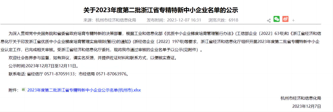 為促進國家高質量發展,強化企業科技創新,2023年度第二批省專精特新中小企業名單于近日公布,浙江杰锎科技有限公司入選。
