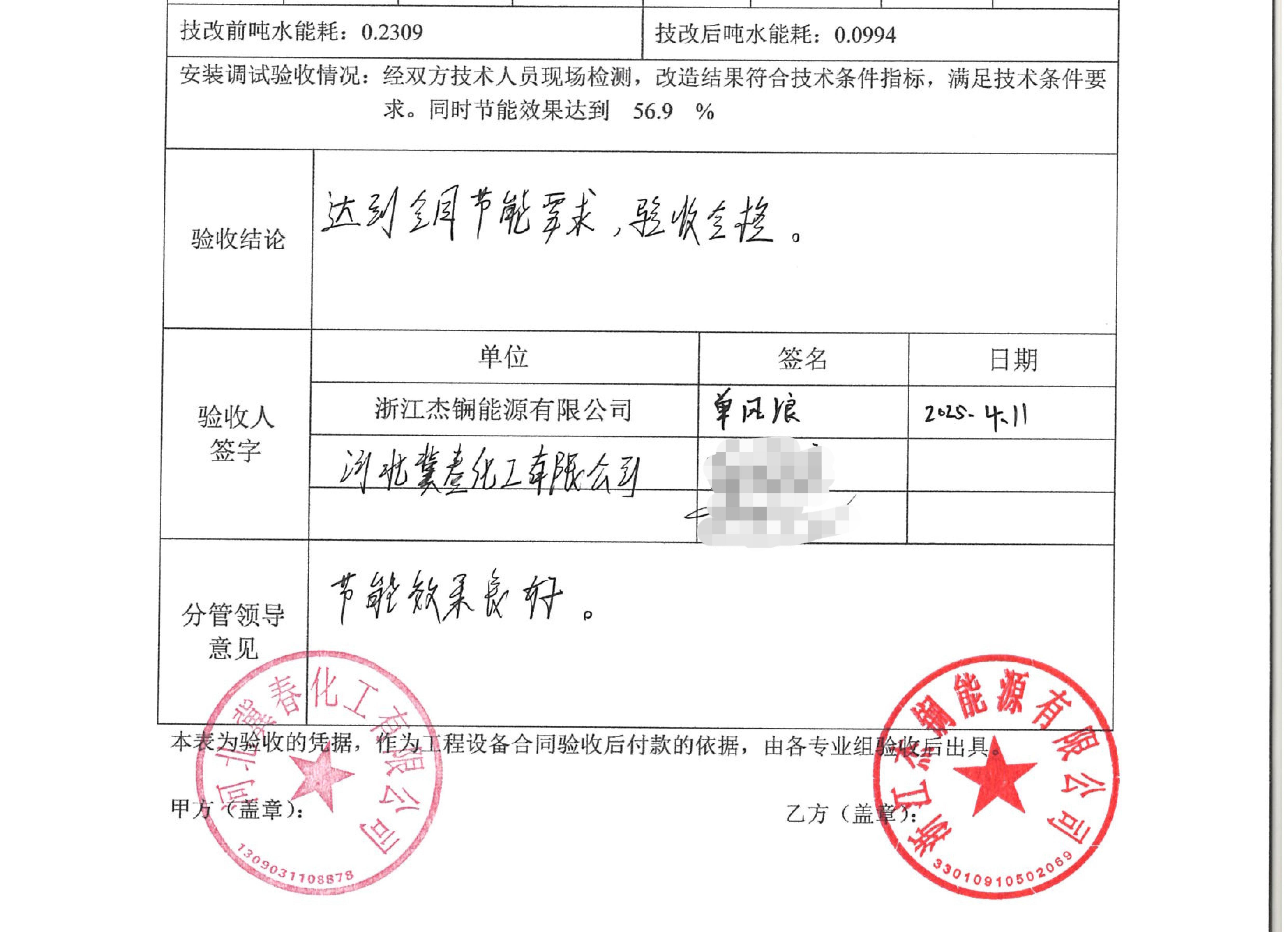 此次改造不僅為冀春化工帶來經濟效益和環境效益,也為我司再次積累了工業節能的寶貴經驗,再次印證了我司的節能實力。