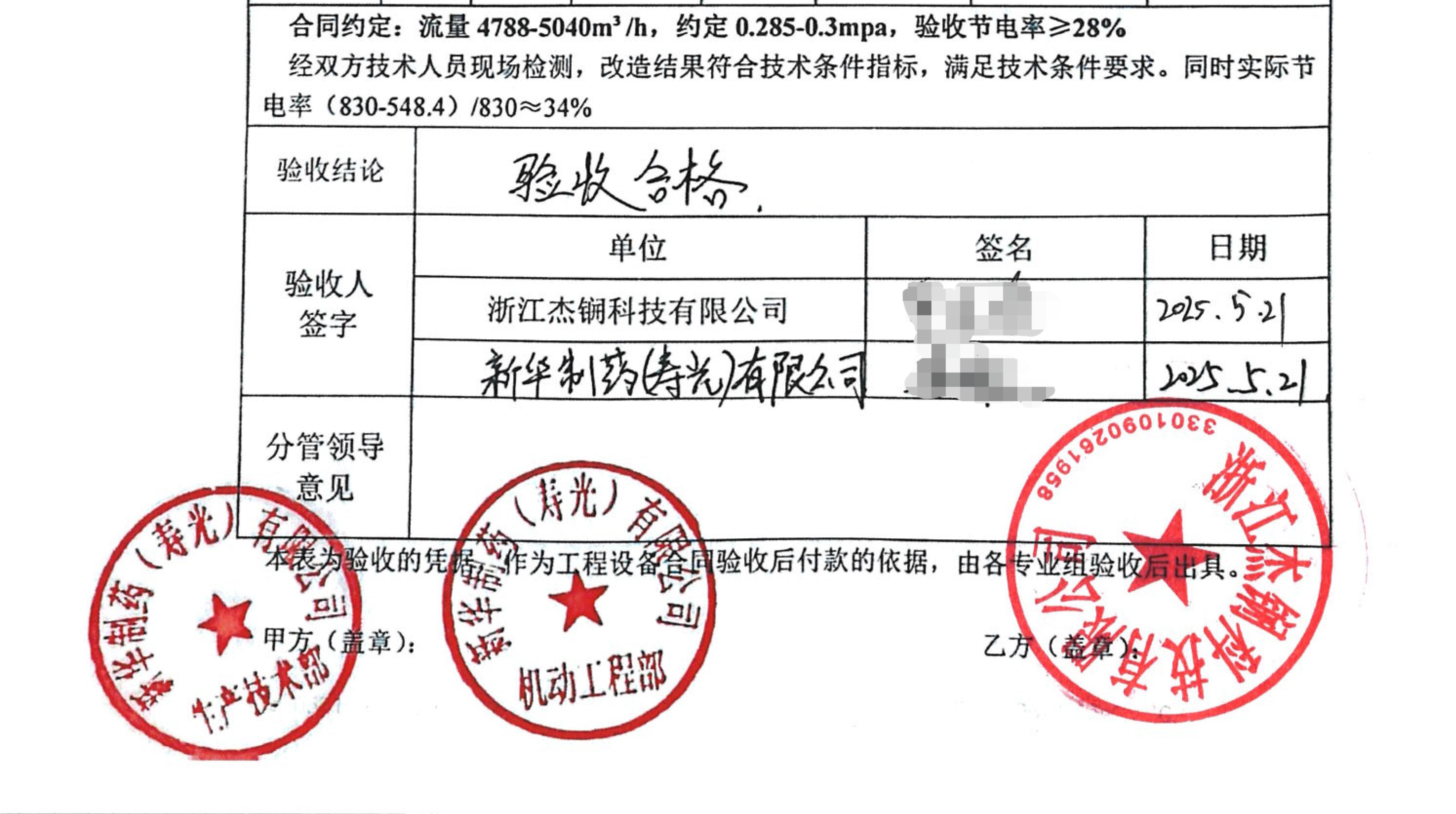 改造后,循環水系統的節電率達34%,這意味著新華制藥(壽光)在降低能源成本的同時,也大幅減少了碳排放,為企業的可持續發展注入了強大的動力。這一成果不僅得到了新華制藥(壽光)的高度認可和贊揚,也為我司在工業節能領域贏得了良好的聲譽。